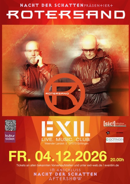 https://neuwerk-music.com neuwerk Music neuwerk Music - Nacht der Schatten Veranstaltung mit neuwerk Music FR. 04.12.2026 EXIL live. music. club. Göttingen, Weender Landstraße 5 Einlaß: 19.00h / Beginn: 20.00h + Aftershowparty: Nacht der Schatten Dec 04.12 DE Göttingen Exil Exil, DE, Göttingen Nacht der Schatten @ Exil